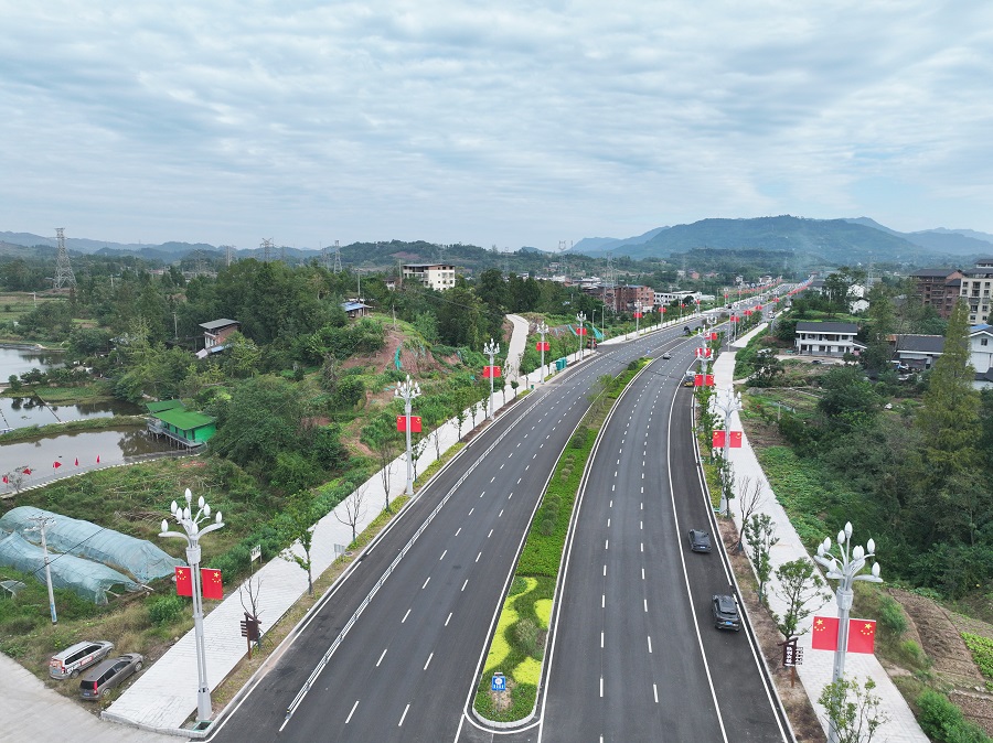 該項(xiàng)目位于達(dá)州市達(dá)川區(qū)亭子鎮(zhèn),由亭子大道、匯通大道、東一縱及南二橫四條道路組成,全長11.06千米,具有建設(shè)任務(wù)繁重、交通協(xié)調(diào)壓力大、施工影響范圍廣等工程難點(diǎn)。為保障道路瀝青鋪筑安全高效和周邊居民出行安全,項(xiàng)目部制定了“快進(jìn)場、早開工、保證重點(diǎn)、突破難點(diǎn)、克服困難”的方案,采取分時、分段施工法,嚴(yán)格把控工程質(zhì)量安全,爭分奪秒推進(jìn)工程進(jìn)度。在施工現(xiàn)場,壓路車、攤鋪機(jī)、運(yùn)輸車配合默契,鋪設(shè)、壓實(shí)、修正各道工序井然有序,標(biāo)高、厚度、橫坡控制精細(xì)把控,最終順利完成了四條道路的瀝青鋪筑任務(wù)。